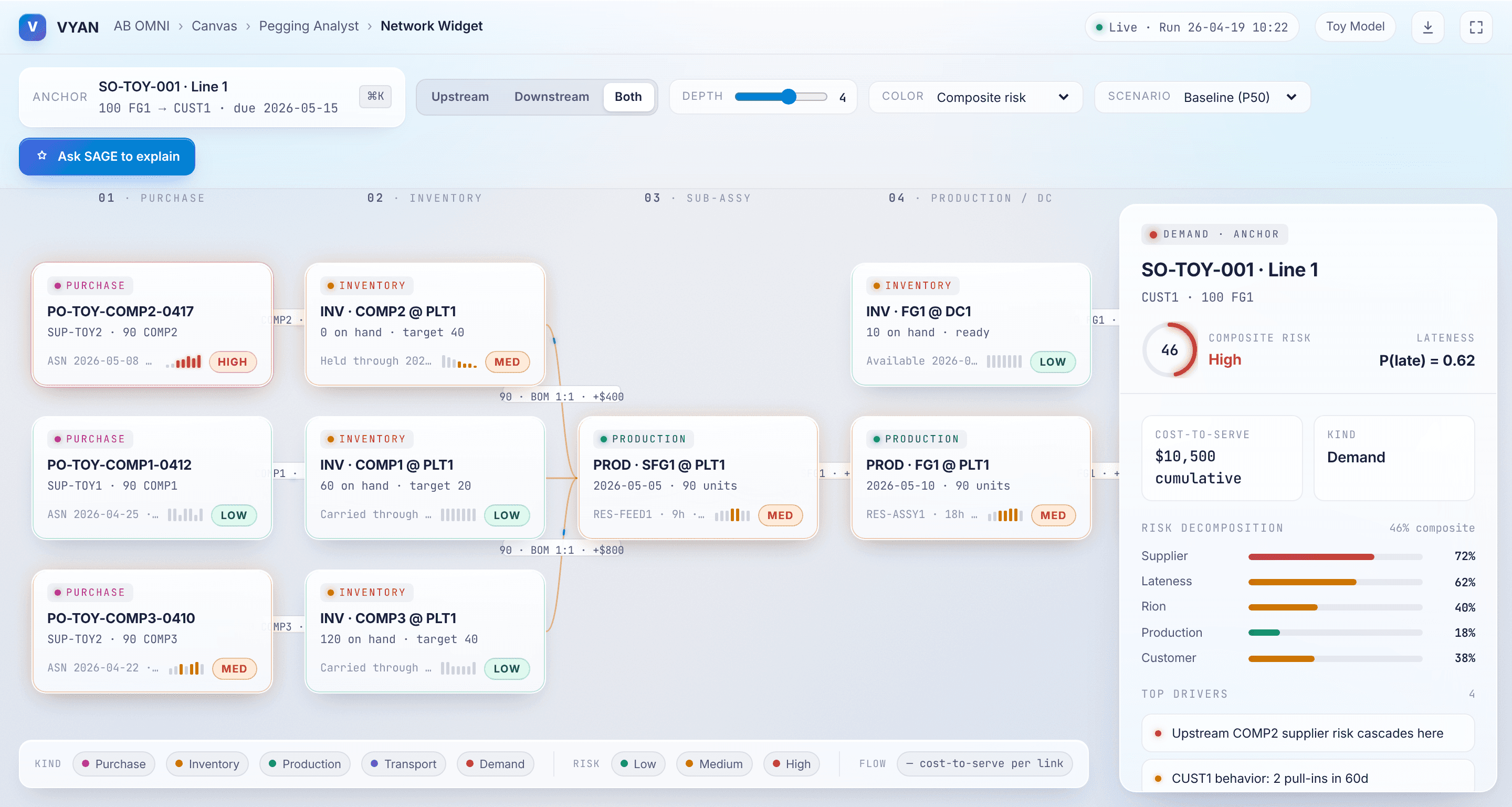 Forecast & Optimize. VYAN autonomously generates demand forecasts, optimizes supply plans, and balances financial trade-offs.