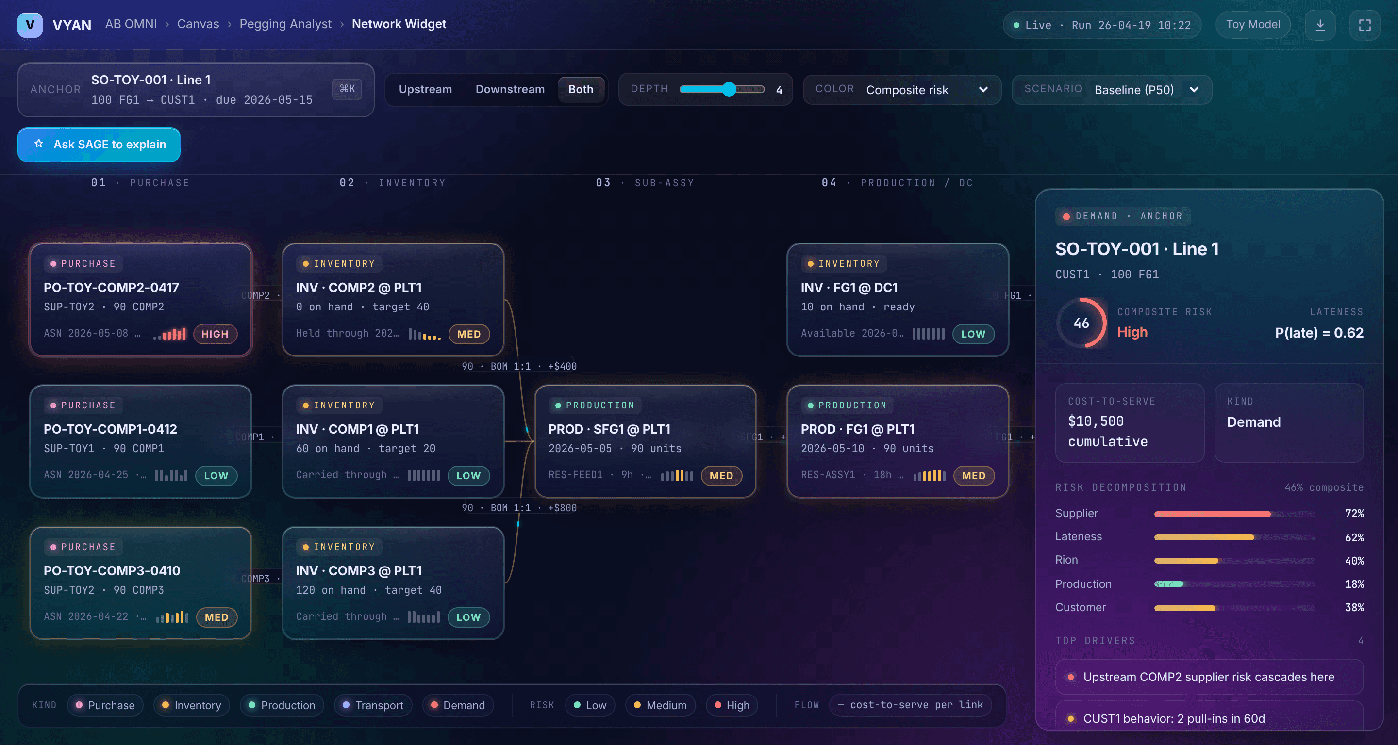 VYAN gives business leaders and planners a single platform to make better decisions under uncertainty. Forecast demand, optimize supply, optimize financial balance, and mitigate risk as a single enterprise optimization solve.